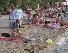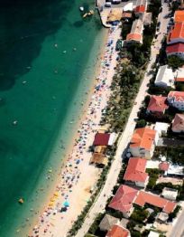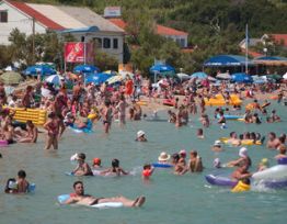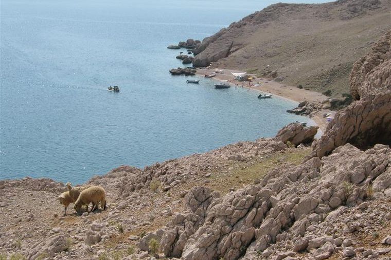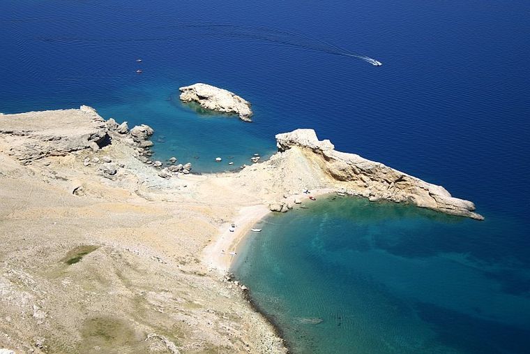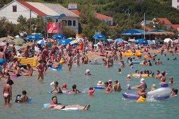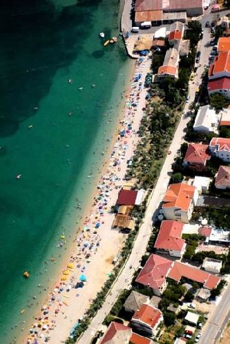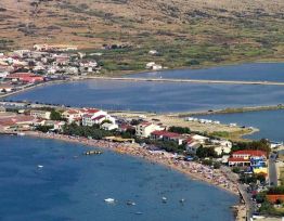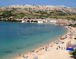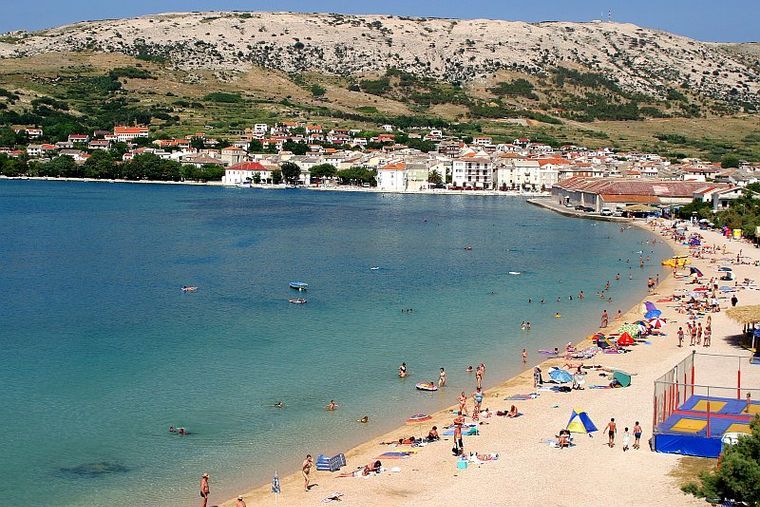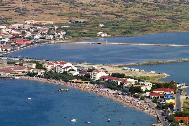La più grande spiaggia in prossimità del centro storico è Prosika, ed il Golfo di Pag dispone di 27 km di spiagge di sabbia, ghiaia e pietra, tra cui le più famose e le più belle sono Zrće, Janjeće vode, Beritnica, Sveti duh, Sveti Marko, Dubrava, Bošana, Caska, Ručica, Slana, Malin, Veliki zaton, Bijele stijene, Veli bok, Mali bok e Kotica.